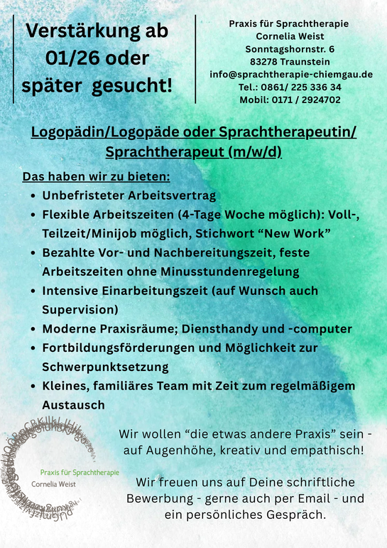 Anfang des Jahres 2025 machte Lara ebenfalls als staat. anerkannte Logopädin mit ihrer einfühlsamen Art unser Team komplett. Die Geduld, die sie mit ihren Patienten aufbringt, ist die gleiche, die sie auch für ihren Hund Rocki mitbringt - und der ist ein wirklicher Herzensbrecher!